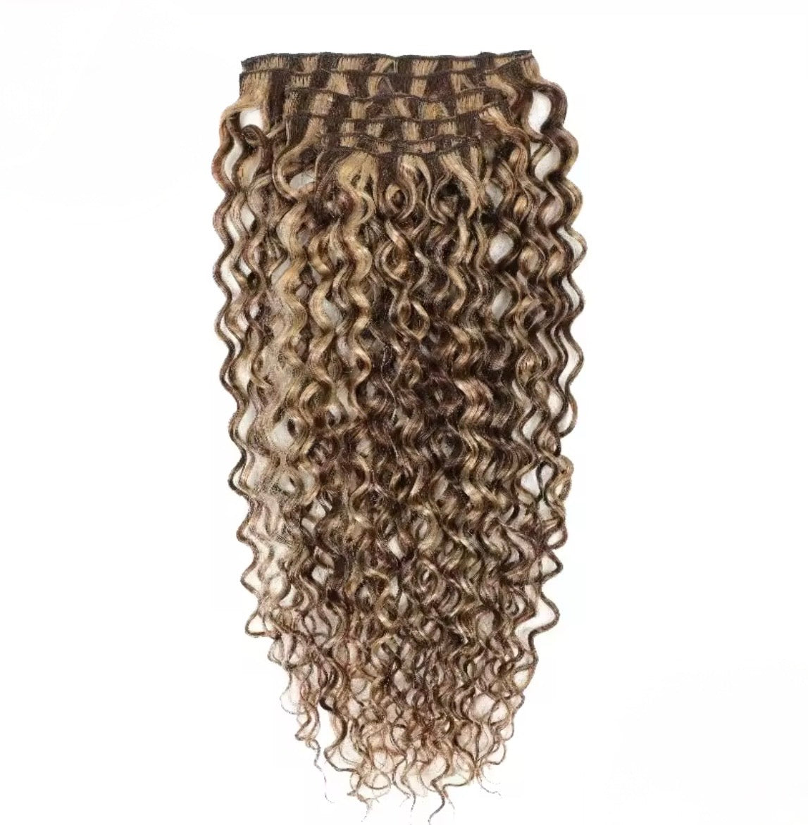 Rizado / #Mechas marrón claro/rubio dorado / 18 Pulgadas /45cm/ 240gramos