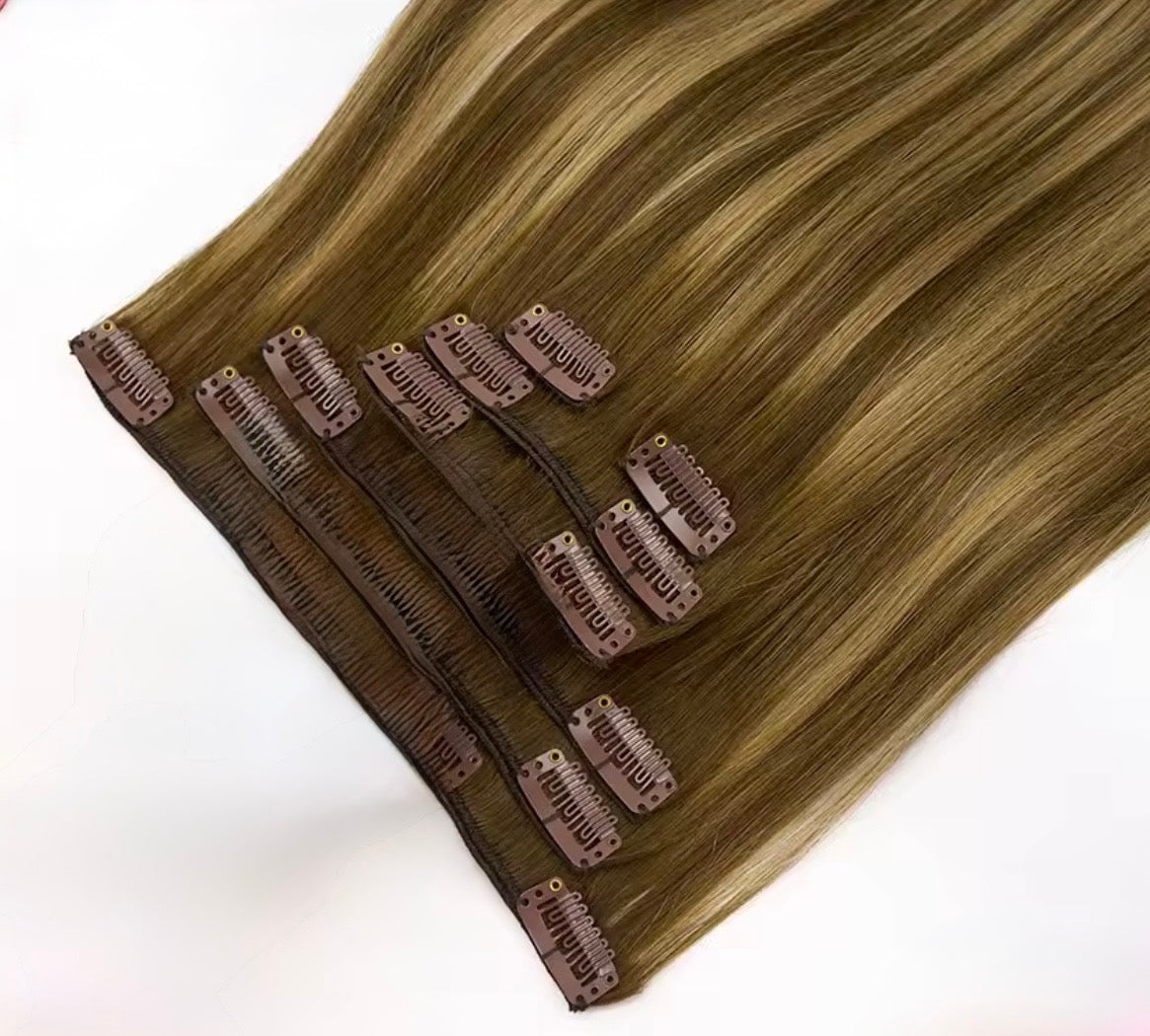 Liso / #Mechas marrón claro/rubio dorado / 18 Pulgadas /45cm/ 240gramos