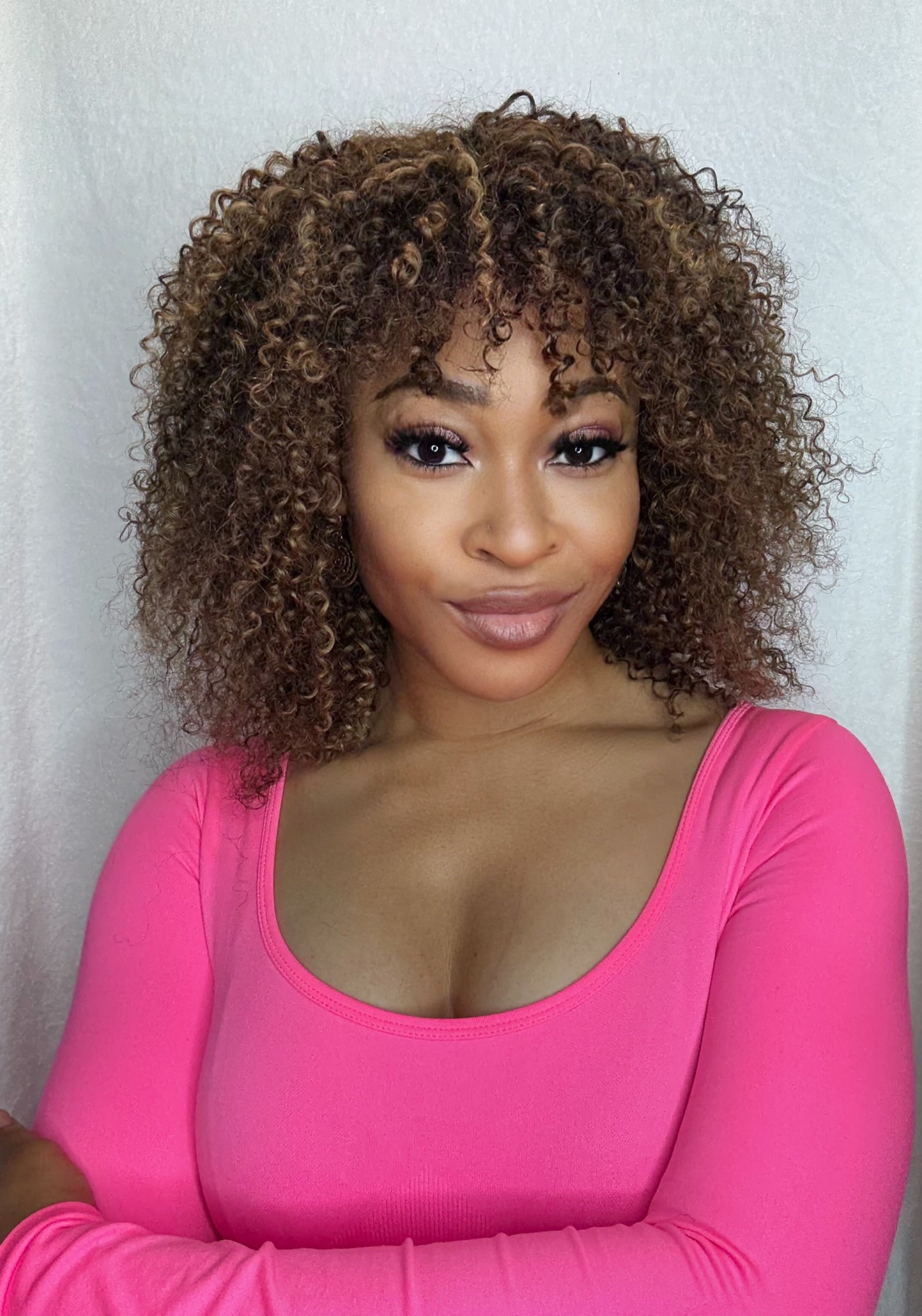 Peluca de pelo natural rizada con mechas flequillo (Gladis)